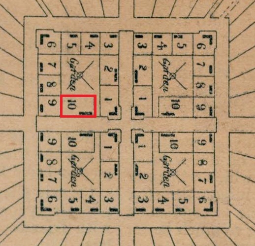 Map showing in red the house lot allocated to Lady Moody in 1646.