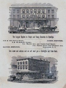 Well, I dug, dug, dug through my vast hoard of Gravesendiana, but couldn’t find any ephemera explicitly related to Thanksgiving. Not one turkey. So, by way of compensation, here’s an image of a sweet little Victorian girl fleeing a menacing goose that’s just emerged from a cornucopia on back of an 1882 advertising card for Johnston Brothers, grocers (they had branches in the City of Brooklyn and in Gravesend). Enjoy the holiday, and avoid angry waterfowl!