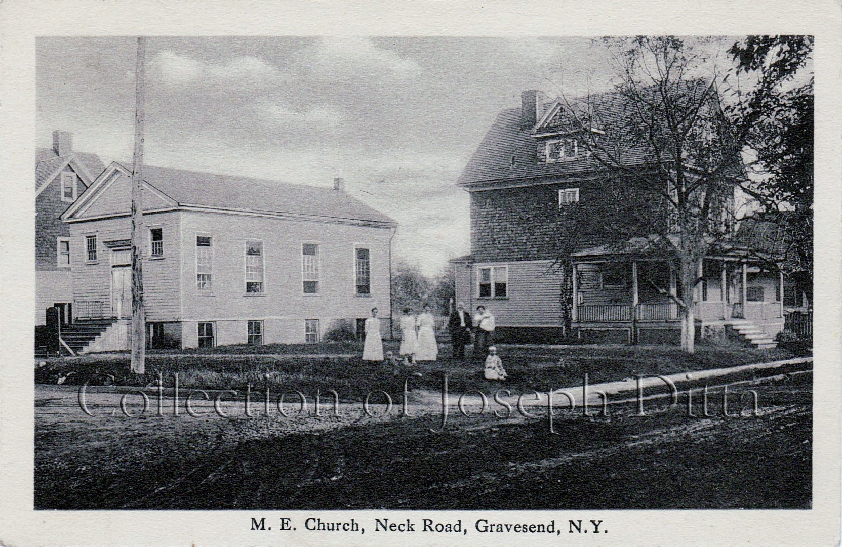 Postcard view of the Gravesend Methodist Epsicopal Church, southeast corner of Neck Road and Van Sicklen Street, circa 1910. {Collection of Joseph Ditta}