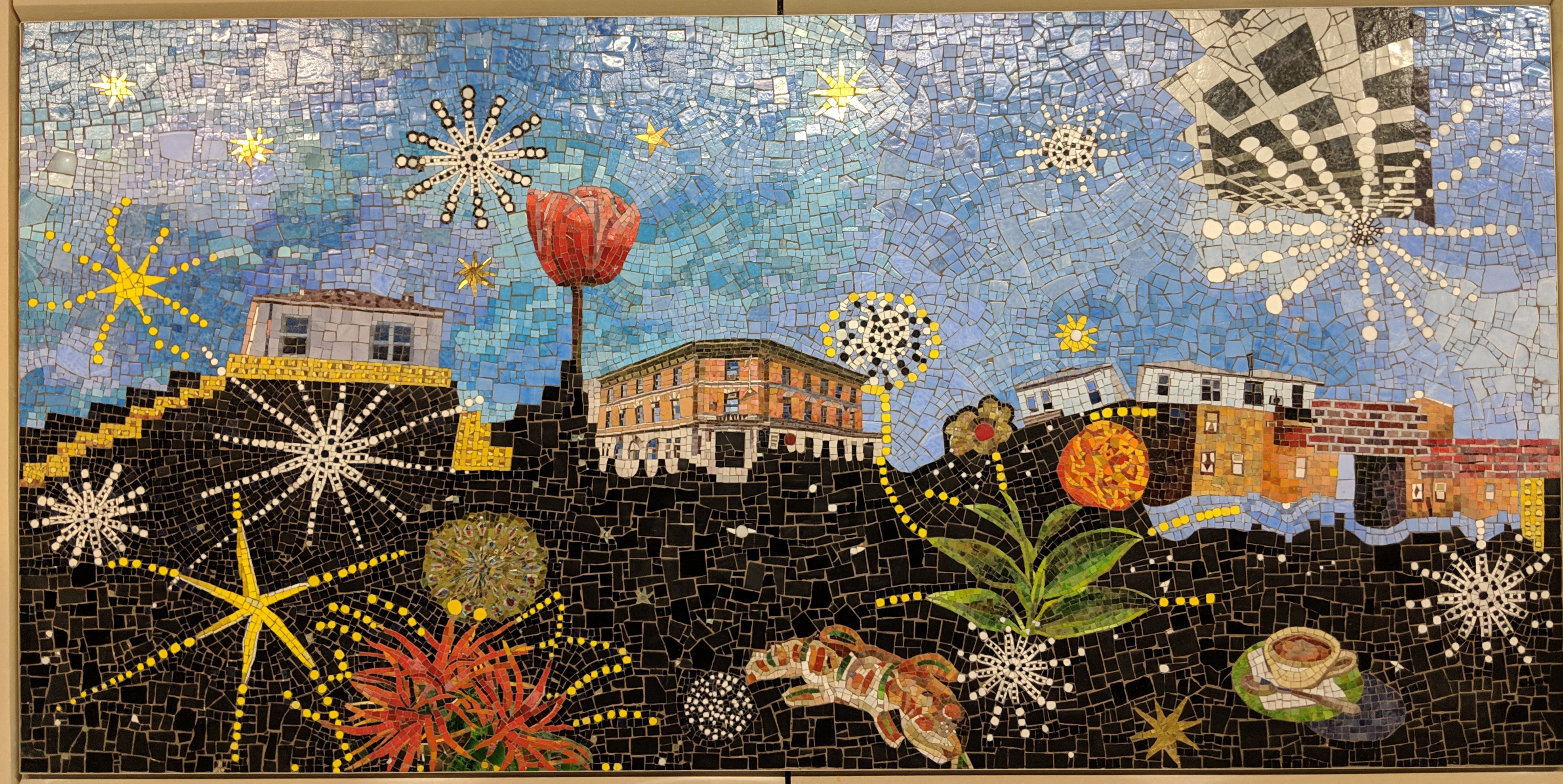 Sally Gil, “Edges of a South Brooklyn Sky,” 2018. Sea Beach line, Avenue U station, Manhattan-bound platform. 62nd Precinct station house (center).
